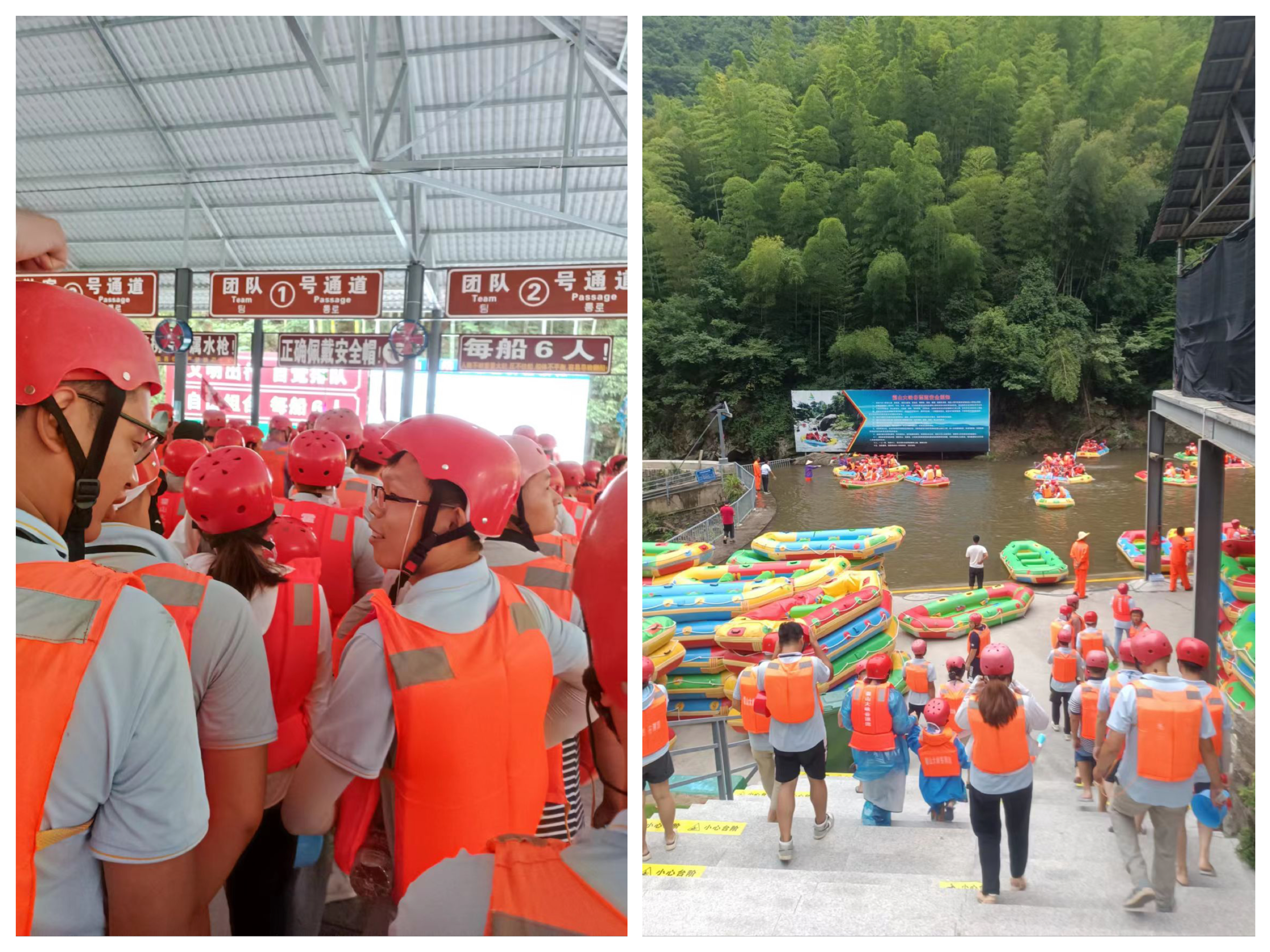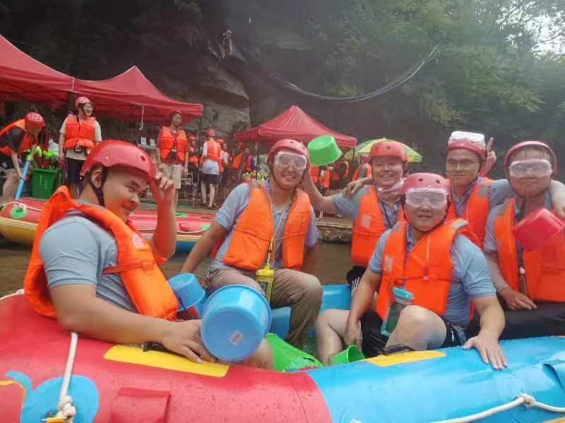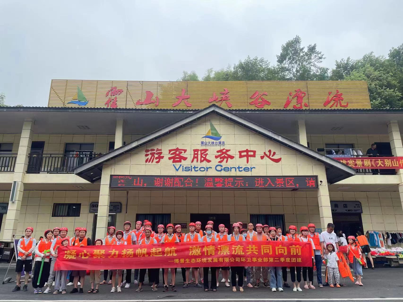 7月23日,主题为"凝心聚力扬帆起航,激情漂流共同前进"的漂流团建活动在霍山大峡谷举行。火狐电竞环卫事业部的员工们统一着装,戴好安全帽,穿上救生衣全副武装,做好漂流安全准备工作。
