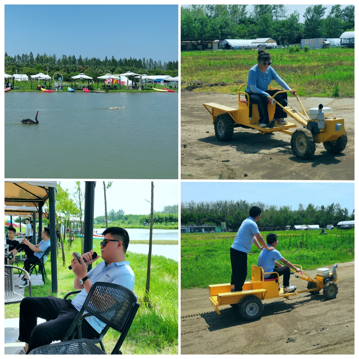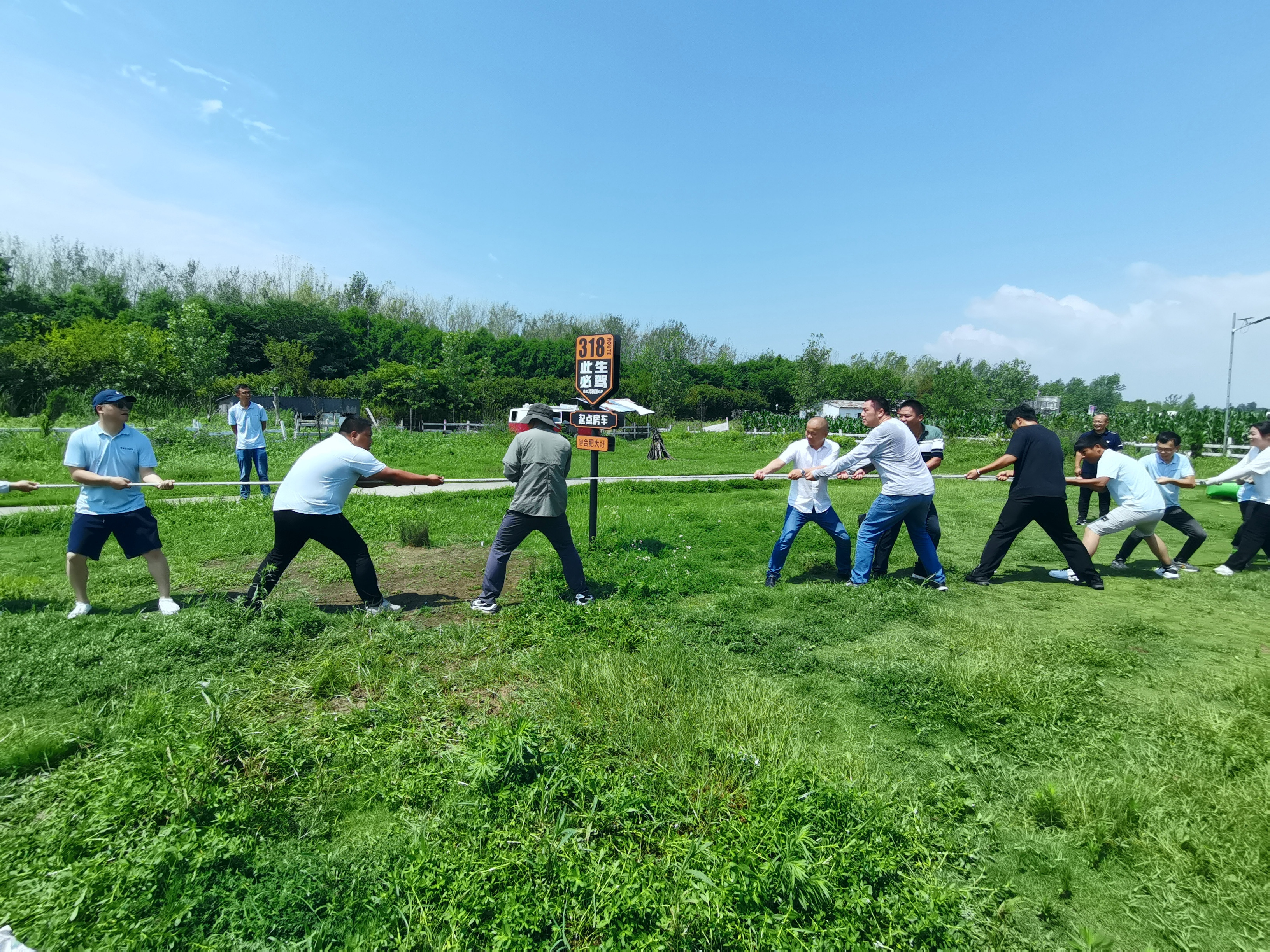 夏日炎炎,热情不减,顺利到达农场后我们快速集合展开娱乐游戏活动。幽默风趣的教练指挥我们做热身小游戏,最后组队进行拔河比赛。队友齐心协力,力往一处使,拔河游戏让我们在梦回少年游戏的同时也感受到了团队的凝聚力。